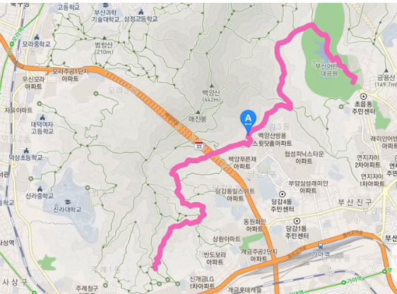 | 6-3코스 | 시작 | 주례정 | 부산 부산진구개금동 산 21-1 |